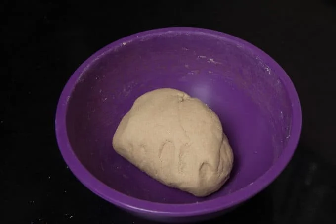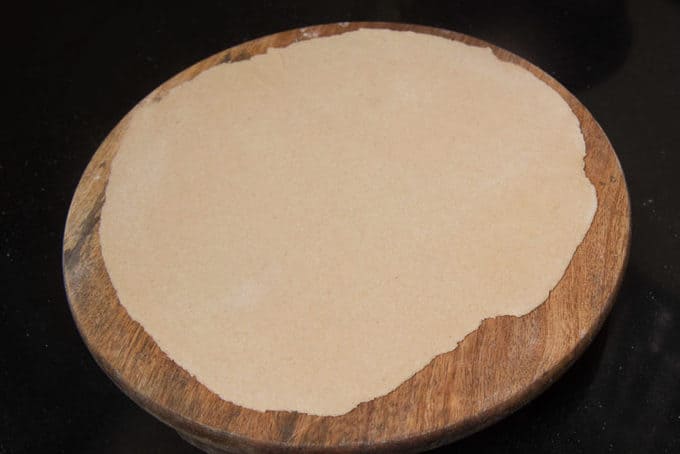 Knead the dough once again for a minute and divide it into 4 equal parts. Roll the dough ball on a lightly floured surface to make a thin circle.