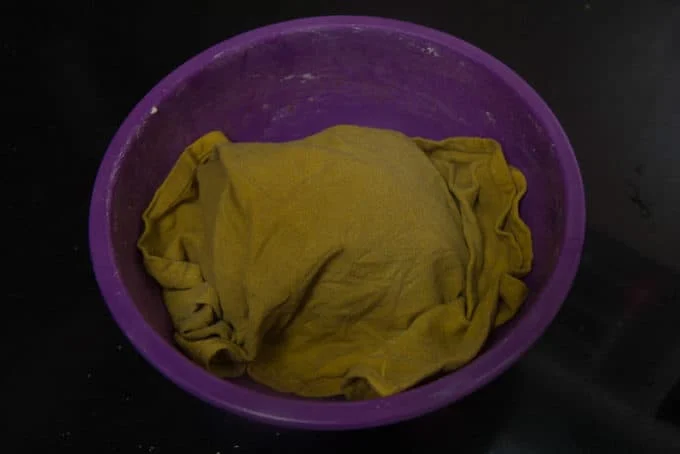 Cover the dough with a damp cloth and keep aside for 15 minutes.