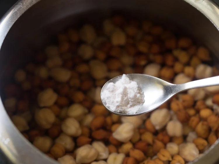 Pressure cook on medium heat for 18 to 19 minutes. When pressure settles down on its own in the cooker, then only open the lid and check if the chickpeas are cooked well or not.