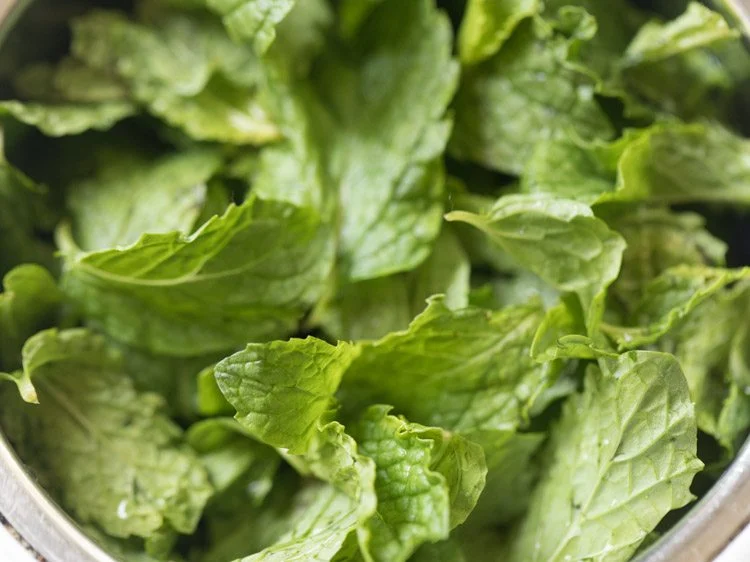 Rinse the mint leaves well with water before adding them to the grinder jar.